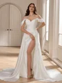 • A-line Cold Shoulder Pleated Court Train Charmeuse Wedding Dress
