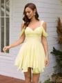 • A-line Cold Shoulder Pleated Short/Mini Chiffon Corset Dress