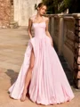• A-line Halter Pleated Floor-Length Taffeta Corset Prom Dress