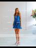 This charming short/mini dress exudes modern sophistication with its A-line silhouette and distinctive details. Designed with a halter neckline that ties elegantly at the back of the neck, it highlights the shoulders and creates a flattering silhouette. The sleeveless cut enhances its sleek and contemporary look, perfect for various special occasions. Crafted from metallic satin fabric, the dress offers a luxurious sheen and a smooth texture that catches the light beautifully. Delicate pleating throughout the skirt adds dimension and movement, enhancing its dynamic appeal. Ideal for semi-formal events or cocktail parties, this dress combines classic charm with a hint of glamour, making it a standout choice for any elegant affair.