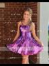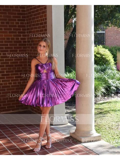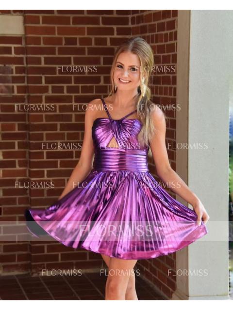 • A-line Halter Pleated Short/Mini Metallic Satin Dress