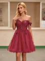 A-line Off-the-Shoulder Appliques Lace Short/Mini Tulle Dress