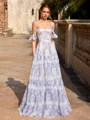 Exude elegance in this A-line prom dress featuring an off-the-shoulder neckline and sleeveless design. The floor-length silhouette flows gracefully, creating a timeless and sophisticated look perfect for standing out at any formal occasion.