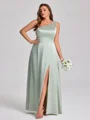 This A-line bridesmaid dress features a chic one-shoulder neckline and sleeveless design for a modern, elegant look. Crafted from smooth silk-like satin, it offers a luxurious finish and graceful drape. The floor-length skirt creates a flattering silhouette-perfect for plus size bridal parties.