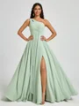 A-line One-Shoulder Pleated Floor-Length Chiffon Bridesmaid Dress