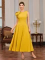 • A-line One-Shoulder Ruffles Tea-Length Stretch Crepe Mother of the Bride Dress