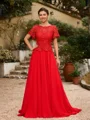 A-Line/Princess Chiffon Applique Scoop Short Sleeves Sweep/Brush Train Mother of the Bride Dresses