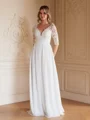 A-Line/Princess Chiffon Lace V-neck 1/2 Sleeves Floor-Length Wedding Dresses