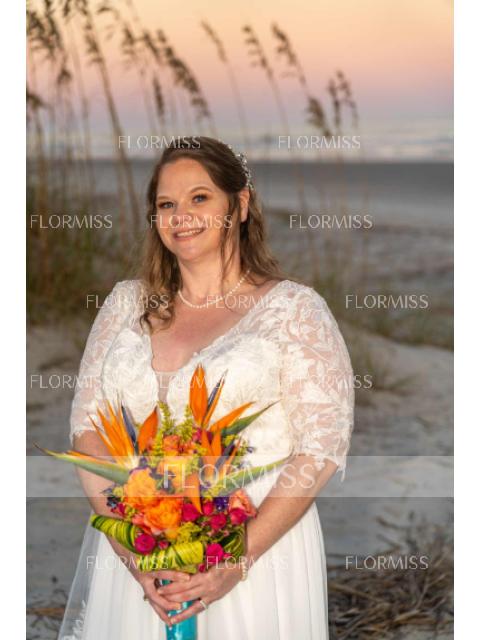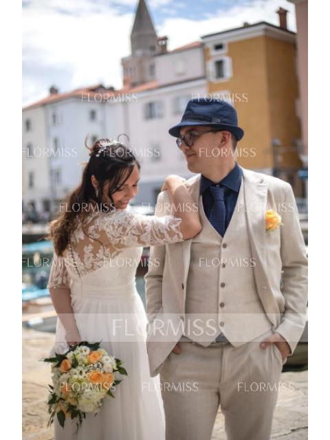 • A-Line/Princess Chiffon Lace V-neck 1/2 Sleeves Floor-Length Wedding Dresses