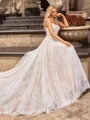 • A-line/Princess Lace Spaghetti Straps Sleeveless Chapel Train Wedding Dresses