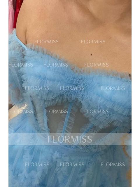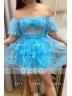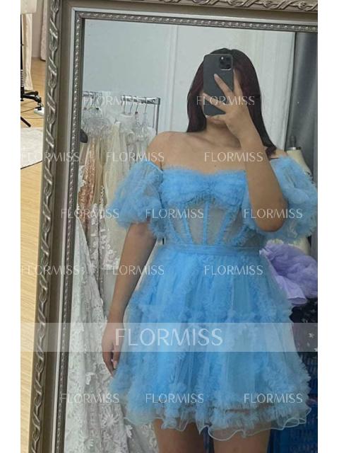 A-Line/Princess Off-the-Shoulder Corset Short/Mini Tulle Homecoming Dresses With Ruffles