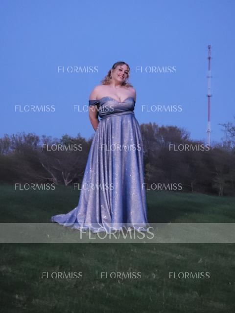 A-Line/Princess Off-the-Shoulder Sweep Train Prom Dresses With Leg Slit
