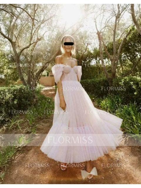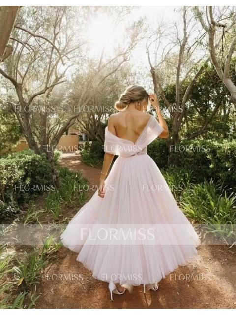 • A-Line/Princess Off-the-Shoulder Tea-Length Tulle Homecoming Dresses With Ruffles