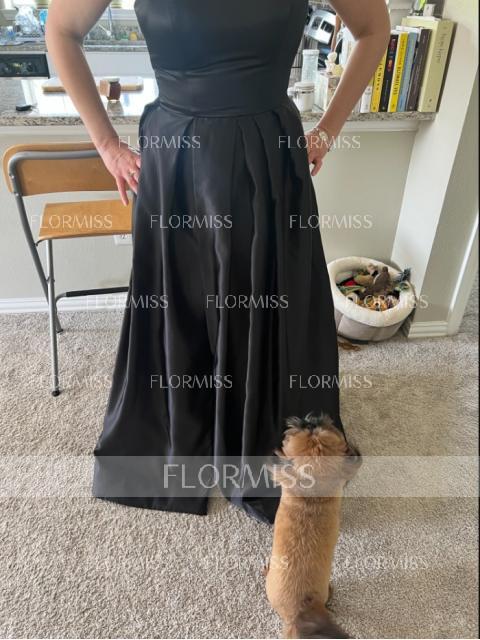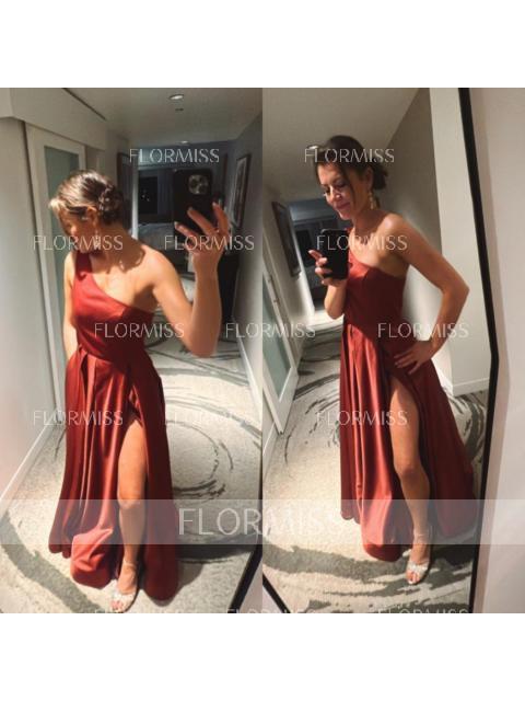 A-Line/Princess One-Shoulder Floor-Length Satin Prom Dresses With Leg Slit