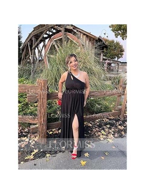 • A-Line/Princess One-Shoulder Floor-Length Sleeveless Jersey Bridesmaid Dress