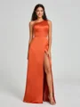 • A-Line/Princess One-Shoulder Floor-Length Sleeveless Satin Bridesmaid Dress