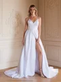 • A-Line/Princess Satin Ruffles V-neck Sleeveless Court Train Wedding Dresses
