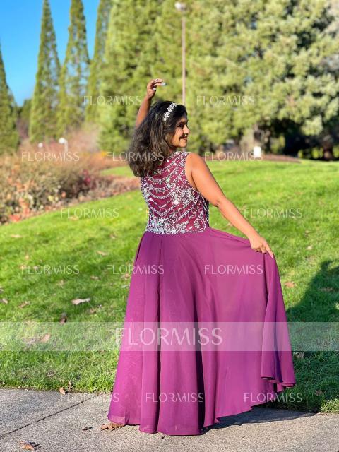 A-Line/Princess Scoop Floor-Length Chiffon Evening Dresses With Rhinestone