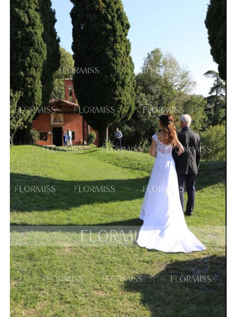 • A-Line/Princess Scoop Satin Lace Sleeveless Sweep Train Wedding Dresses