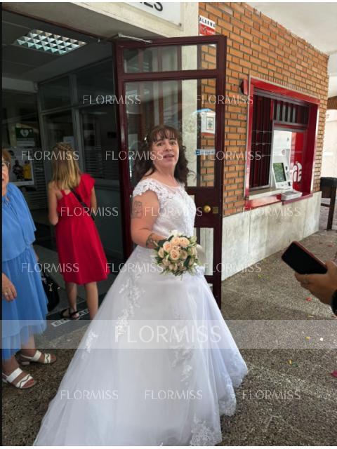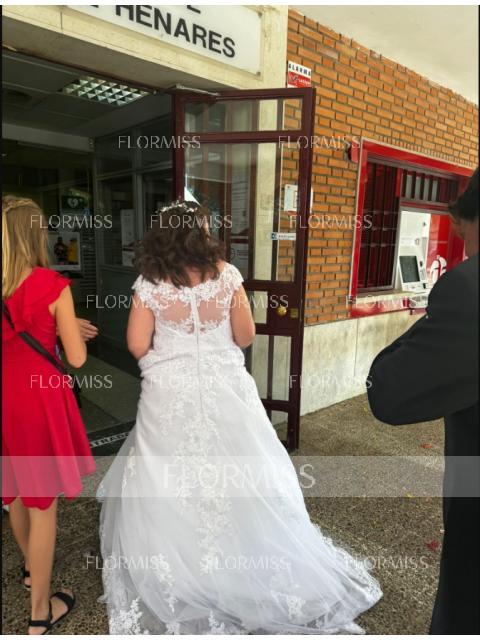 • A-Line/Princess Scoop Sweep Train Tulle Wedding Dresses With Appliques Lace