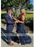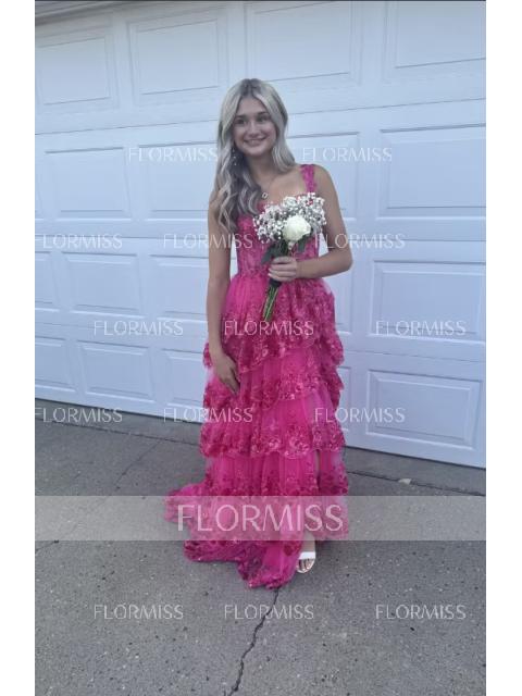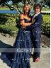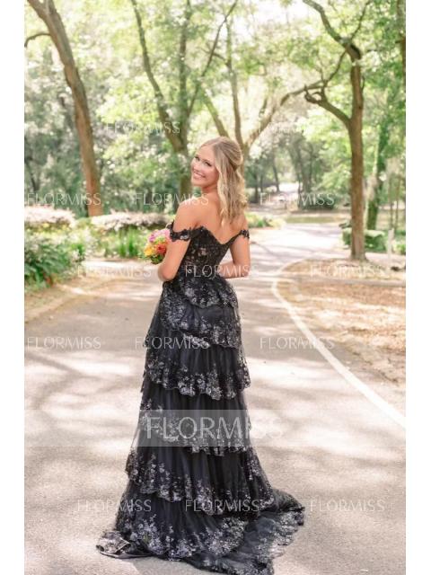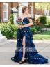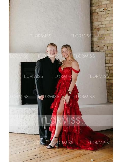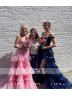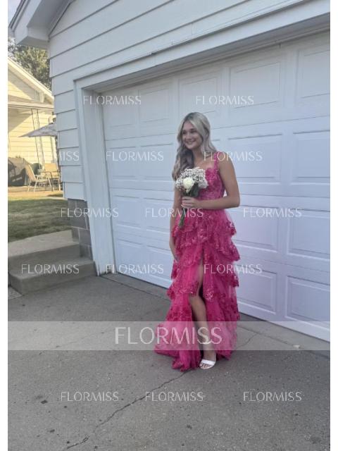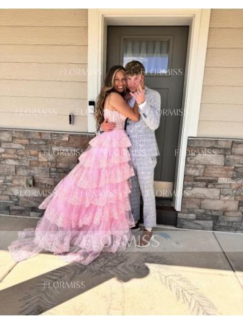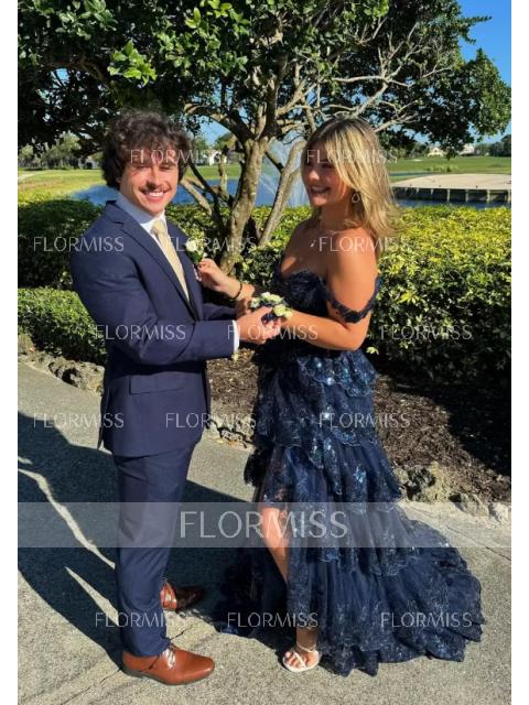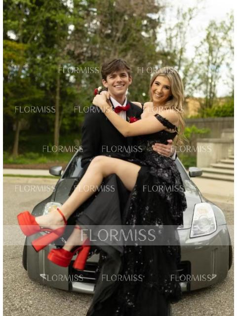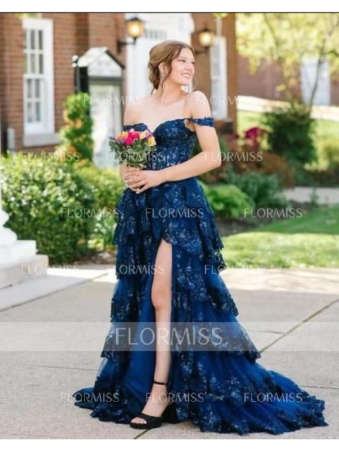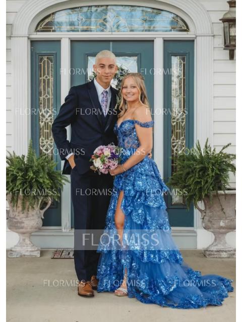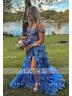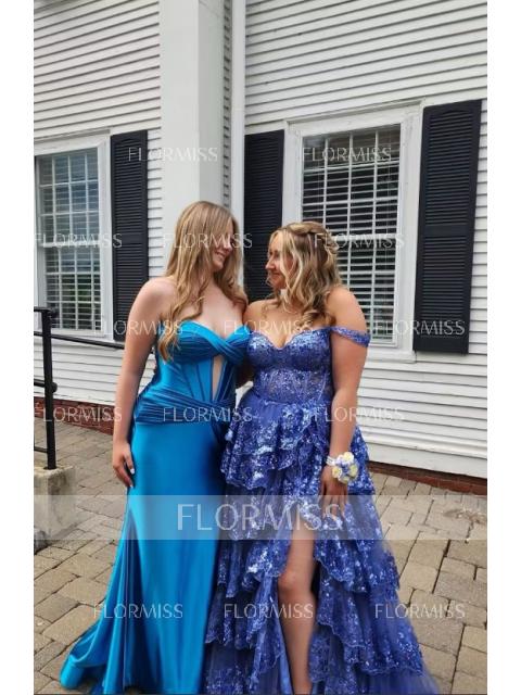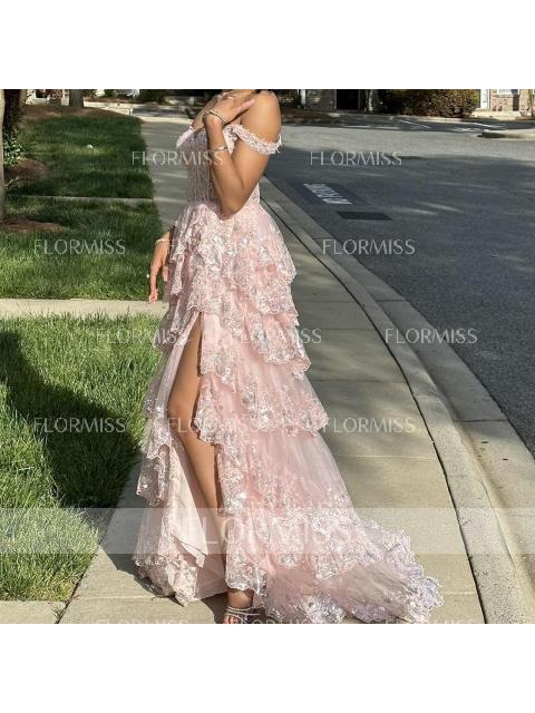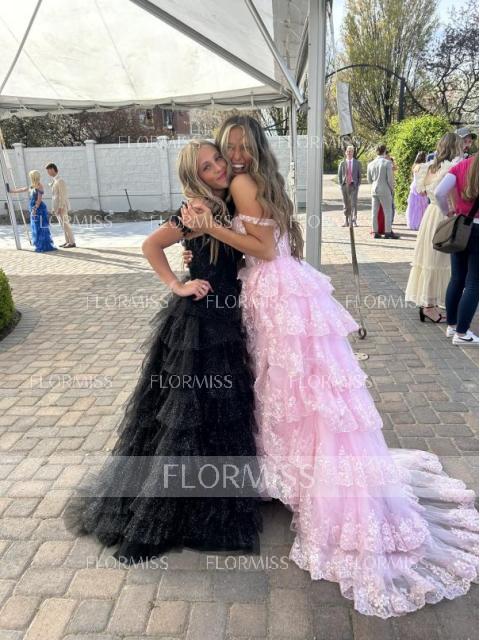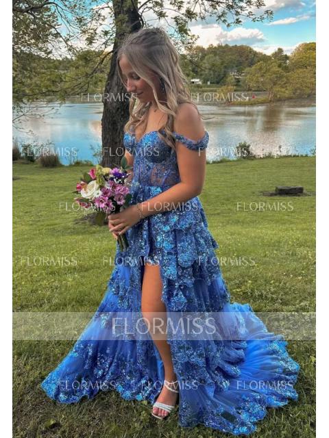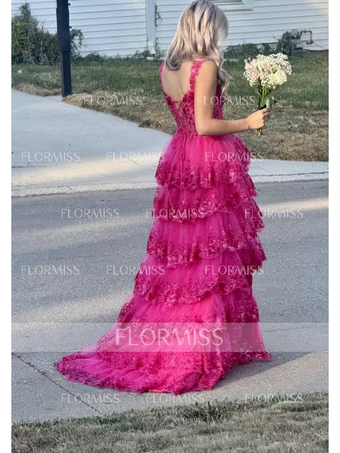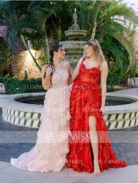 A-Line/Princess Straps Court Train Tulle Prom Dresses With Leg Slit