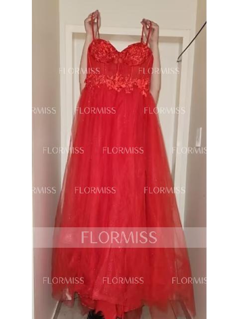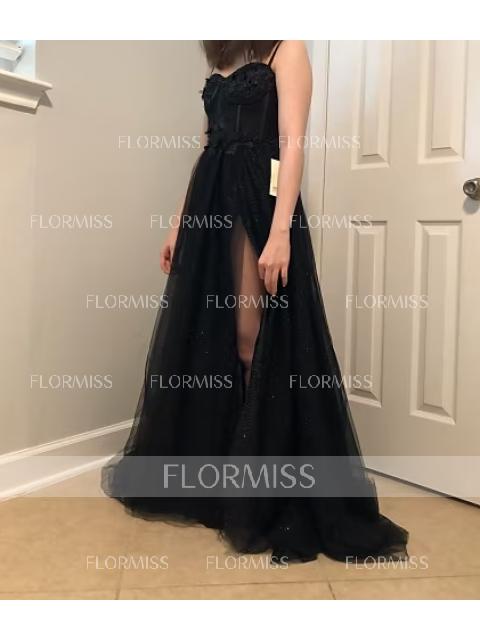 • A-Line/Princess Sweetheart Sweep Train Prom Dresses With Leg Slit