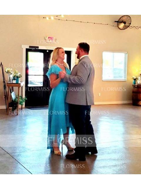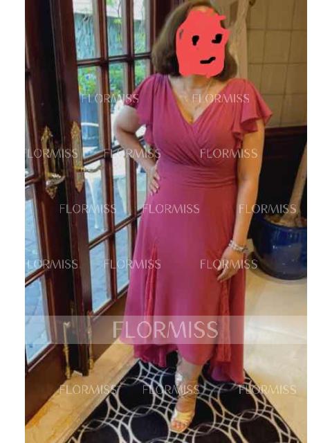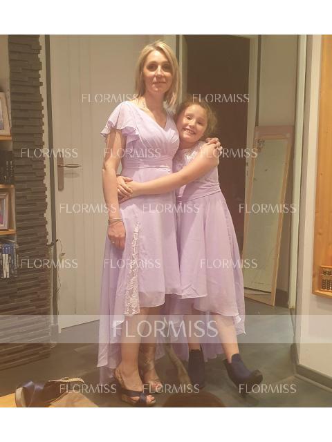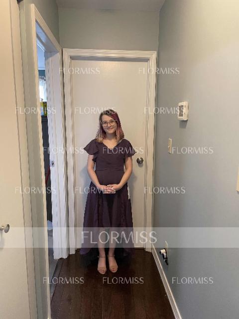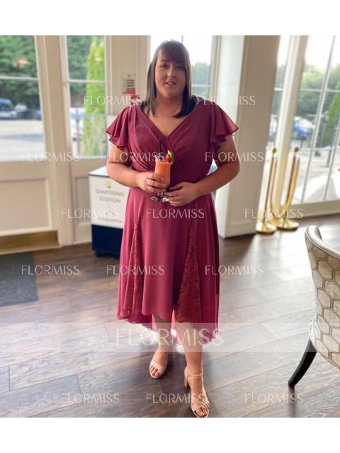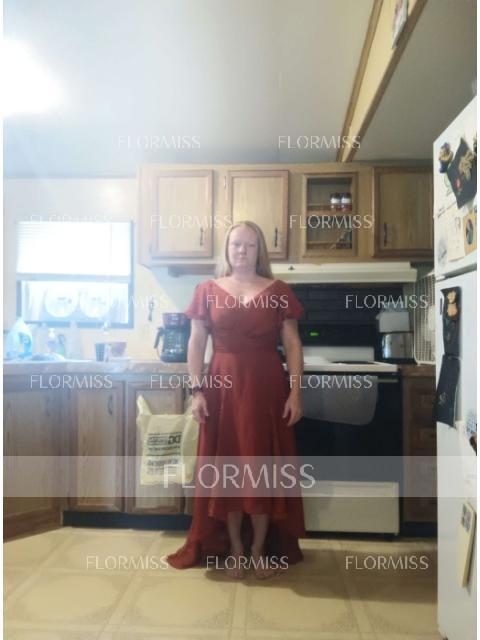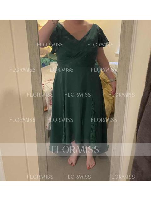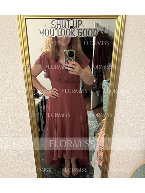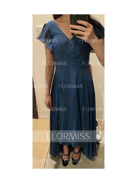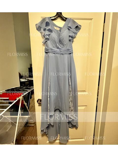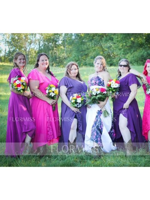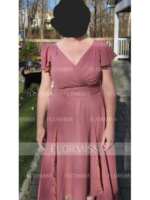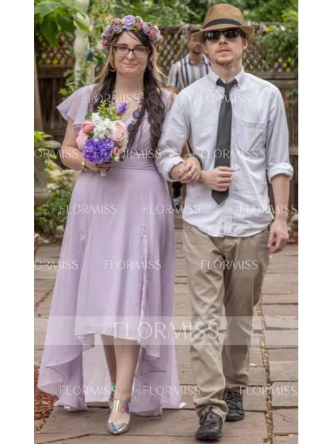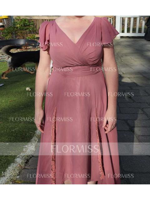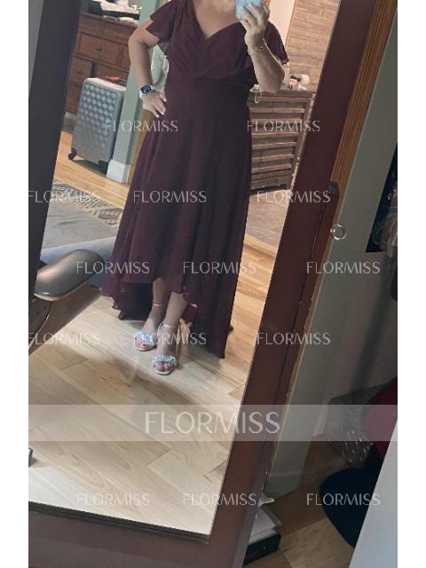 • A-Line/Princess V-neck Asymmetrical Short Sleeves Chiffon Bridesmaid Dress
