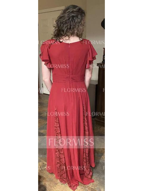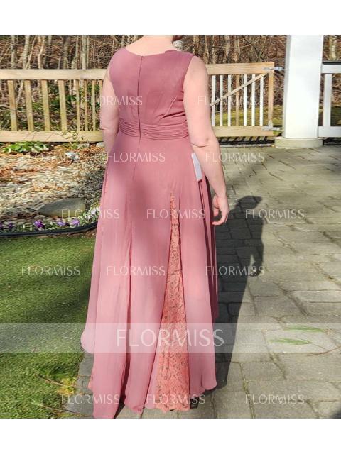 • A-line Chiffon V-neck Pleated Floor-Length Dress