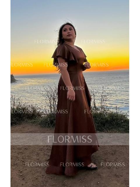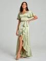 • A-line/Princess V-neck Asymmetrical Short Sleeves Silk Like Satin Bridesmaid Dress