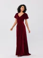 • A-Line/Princess Velvet Ruched V-neck Short Sleeves Sweep/Brush Train Bridesmaid Dresses