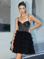• A-line Spaghetti Straps Cascading Ruffles Short/Mini Tulle Corset Dress