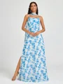 The A-line Spaghetti Straps Sleeveless Floor-Length Bridesmaid Dress is a classic and versatile option for bridal parties. With its flattering A-line silhouette, delicate spaghetti straps, and sleeveless design, this dress offers a timeless and elegant look. The floor-length hem adds a touch of sophistication, making it suitable for formal weddings or special occasions. Perfect for bridesmaids who want a chic and understated style, this dress allows for effortless beauty and comfort throughout the celebration.