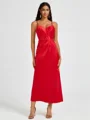 The A-line Spaghetti Straps Sleeveless Pleated Ankle-Length Bridesmaid Dress in Charmeuse is a chic and sophisticated choice for bridal parties. Featuring an A-line silhouette, delicate spaghetti straps, and sleeveless design, this dress exudes modern elegance. The pleated detailing adds texture and dimension to the luxurious charmeuse fabric, creating a graceful and flattering look. Perfect for weddings or special occasions, this dress ensures bridesmaids make a stylish statement while feeling comfortable and confident throughout the celebration.