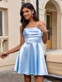 • A-line Spaghetti Straps Pleated Short/Mini Silk Like Satin Dress
