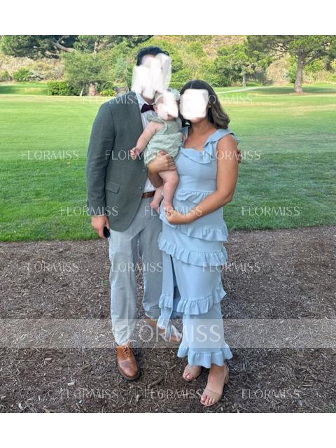 This floor-length bridesmaid dress features an A-line silhouette and a classic square neckline, complemented by a sleeveless design. The simple yet elegant style makes it a versatile and timeless choice for a bridesmaid who desires a graceful and sophisticated look for the wedding.