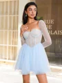 • A-line Square Long Sleeves Beading Short/Mini Tulle Corset Dress