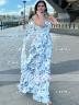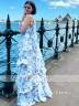This elegant A-line dress features a straight neckline and sleeveless design, with cascading ruffles that add a touch of sophistication. The floor-length chiffon fabric flows beautifully, creating a graceful and refined silhouette.