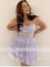 A sleeveless A-line dress with a straight silhouette, adorned with cascading ruffles that create a dynamic and textured effect. The corset bodice ensures a structured and flattering fit, emphasizing the waistline. Designed to be short or mini in length, this dress blends classic A-line elegance with playful ruffle detailing, making it a charming choice for formal events and special occasions.