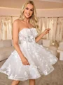 • A-line Straight Long Sleeves Appliques Lace Short/Mini Lace Corset Wedding Dress