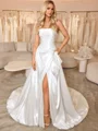 • A-line Straight Pleated Chapel Train Satin Corset Wedding Dress