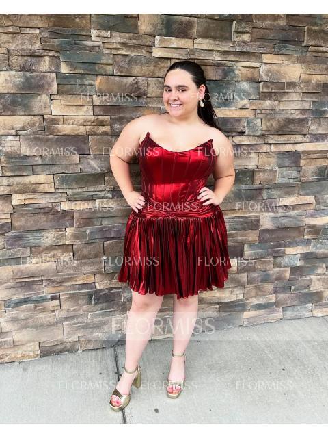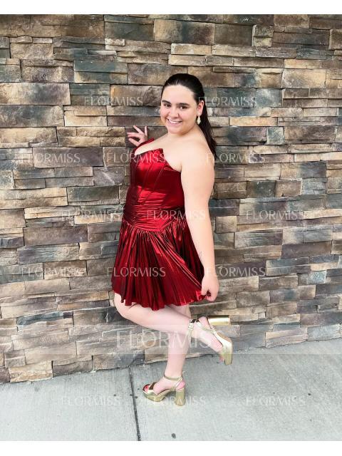 • A-line Straight Pleated Short/Mini Metallic Satin Corset Dress