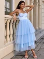 • A-line Straps Cascading Ruffles Tea-Length Tulle Corset Dress