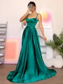 Elegance meets simplicity in this A-line dress featuring straps, a sleeveless design, and a floor-length satin skirt. The dress exudes timeless charm, offering a stylish and sophisticated look.