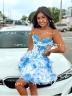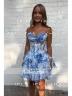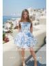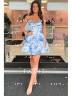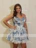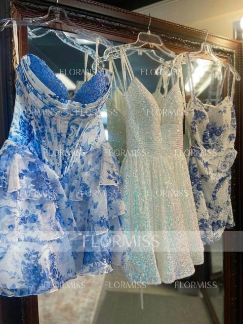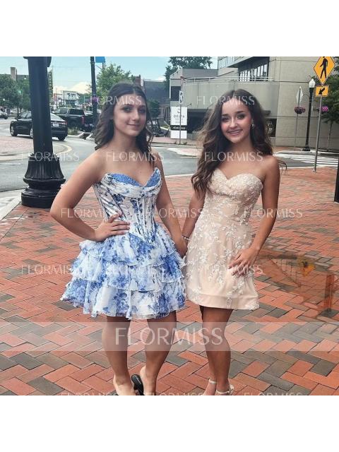 This A-line dress features a romantic sweetheart neckline and sleeveless design. Cascading ruffles add softness and movement, enhancing its feminine charm. The corset bodice shapes the waist, while the short/mini length creates a playful yet elegant silhouette