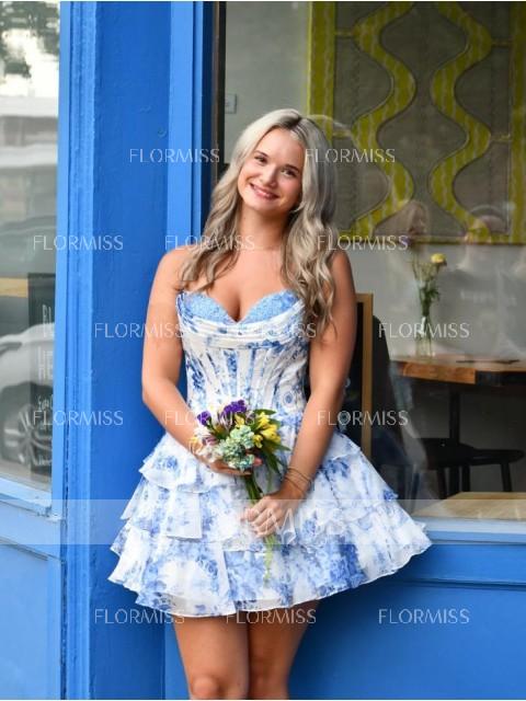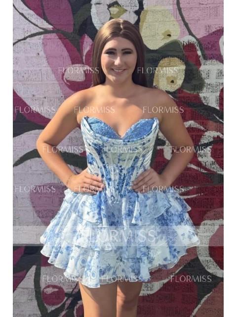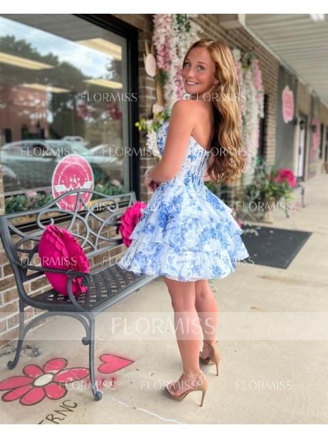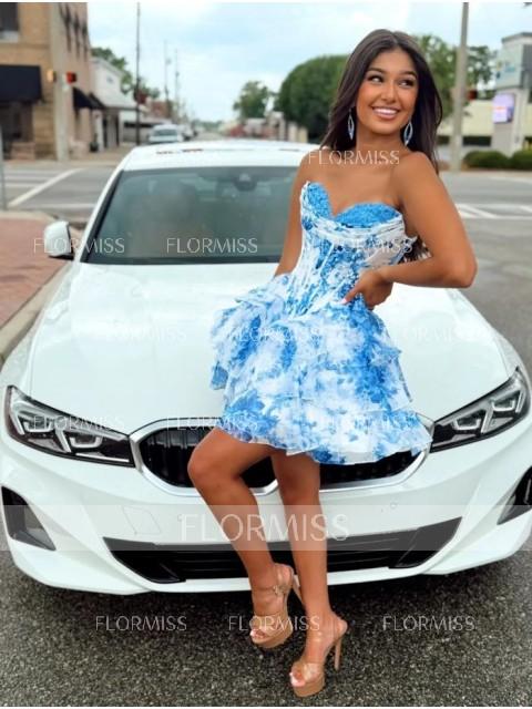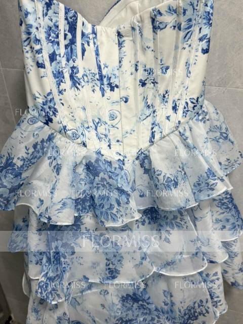 • A-line Sweetheart Cascading Ruffles Short/Mini Corset Dress