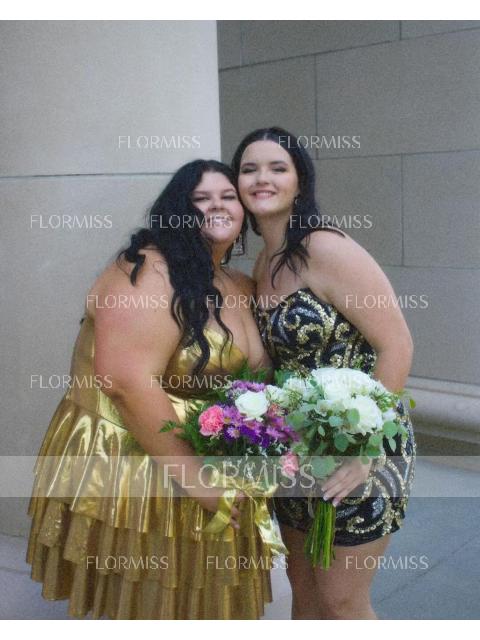 • A-line Sweetheart Cascading Ruffles Short/Mini Metallic Satin Dress
