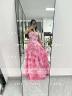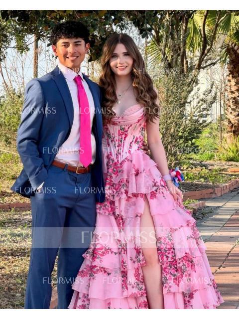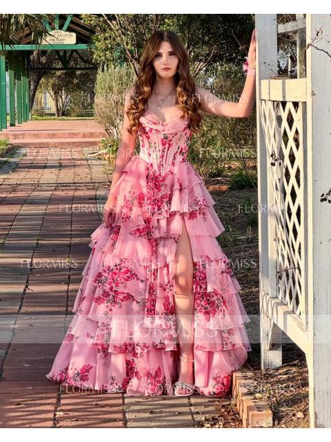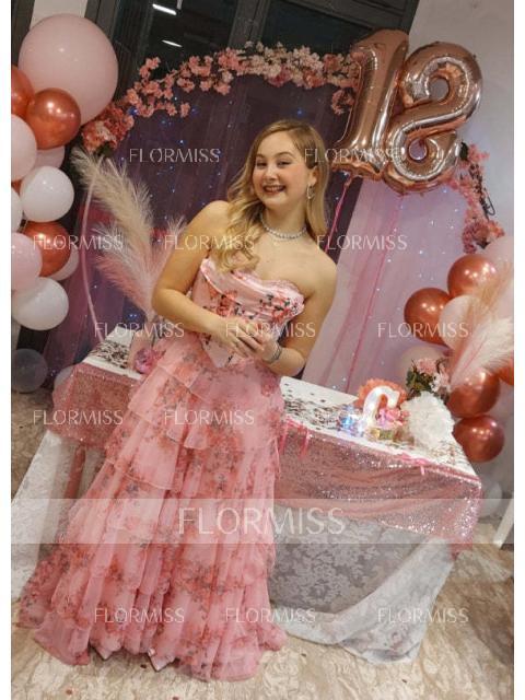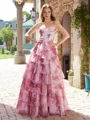 A dreamy A-line dress with a sweetheart neckline and sleeveless design, perfect for romantic occasions. Featuring cascading ruffles that add volume and graceful movement, this floor-length gown is finished with a sweep train for an elegant touch. The fitted corset bodice offers structure and a flattering silhouette, making it an ideal choice for a fairytale-inspired bridal or bridesmaid look.