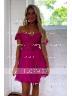 A-line Sweetheart Short Sleeves Appliques Lace Short/Mini Chiffon Corset Dress