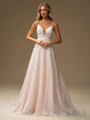Exude timeless romance in this A-line wedding dress, featuring a flattering V-neckline and sleeveless design adorned with intricate lace appliques. Crafted from luxurious organza, it cascades gracefully to the floor with a charming court train, adding an extra touch of elegance. Perfect for the bride seeking classic beauty and sophistication on her special day.Make the color as shown, and the other colors are this color.Make the color as shown, and the other colors should be the same.