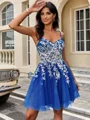 A-line V-neck Appliques Lace Short/Mini Tulle Corset Dress